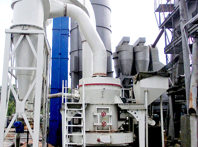 原料由皮帶機(jī)送入至緩沖料倉,由給料機(jī)把物料均勻的送至MTW175-z歐版磨和TGM130-4超壓梯形磨的磨室內(nèi)進(jìn)行碾磨,合格的粉子經(jīng)管道輸送至集粉器內(nèi)進(jìn)行收集,由螺旋輸送機(jī)把成品粉統(tǒng)一