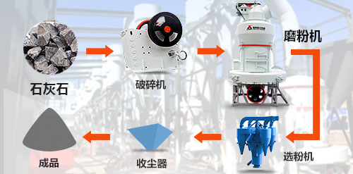 破碎后的石灰石小塊物料經(jīng)提升機送至料倉,再經(jīng)振動給料機將其均勻定量的送入磨機研磨室內(nèi)進行研磨。