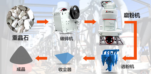 破碎后的小塊重晶石經(jīng)提升機(jī)送至料倉,再經(jīng)振動給料機(jī)將其均勻定量的送入磨機(jī)研磨室內(nèi)進(jìn)行研磨。