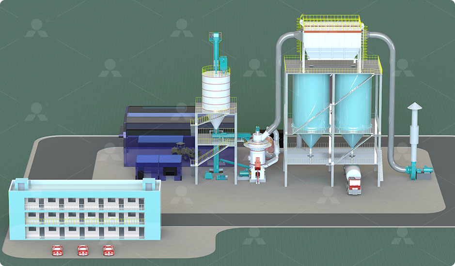 先將潮濕的煤烘干,之后再連續(xù)均勻的送入主機研磨室研磨。粉磨后的細粉在風(fēng)機氣流的作用下經(jīng)過分級機分級,合格細度的細粉通過出風(fēng)管道進入收集階段。